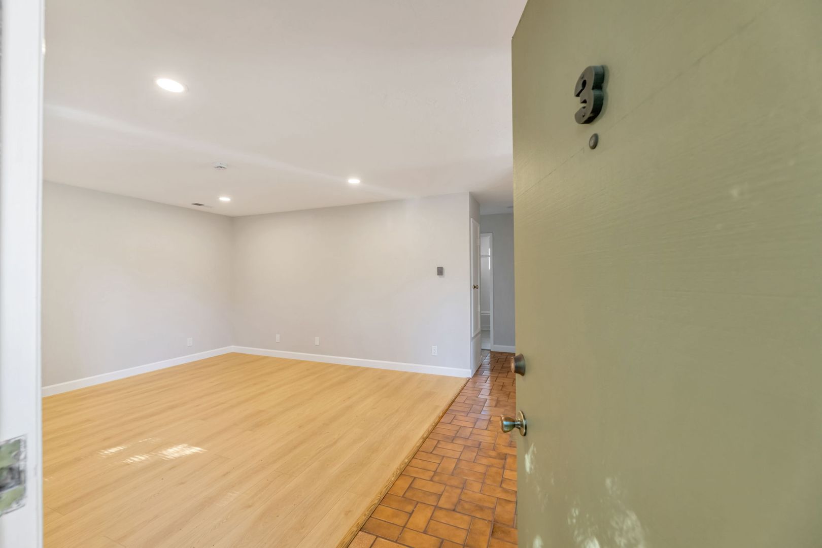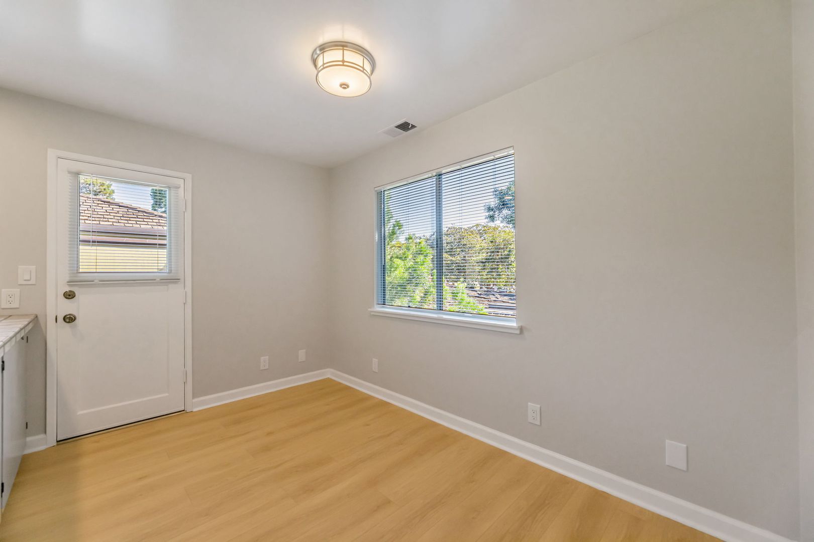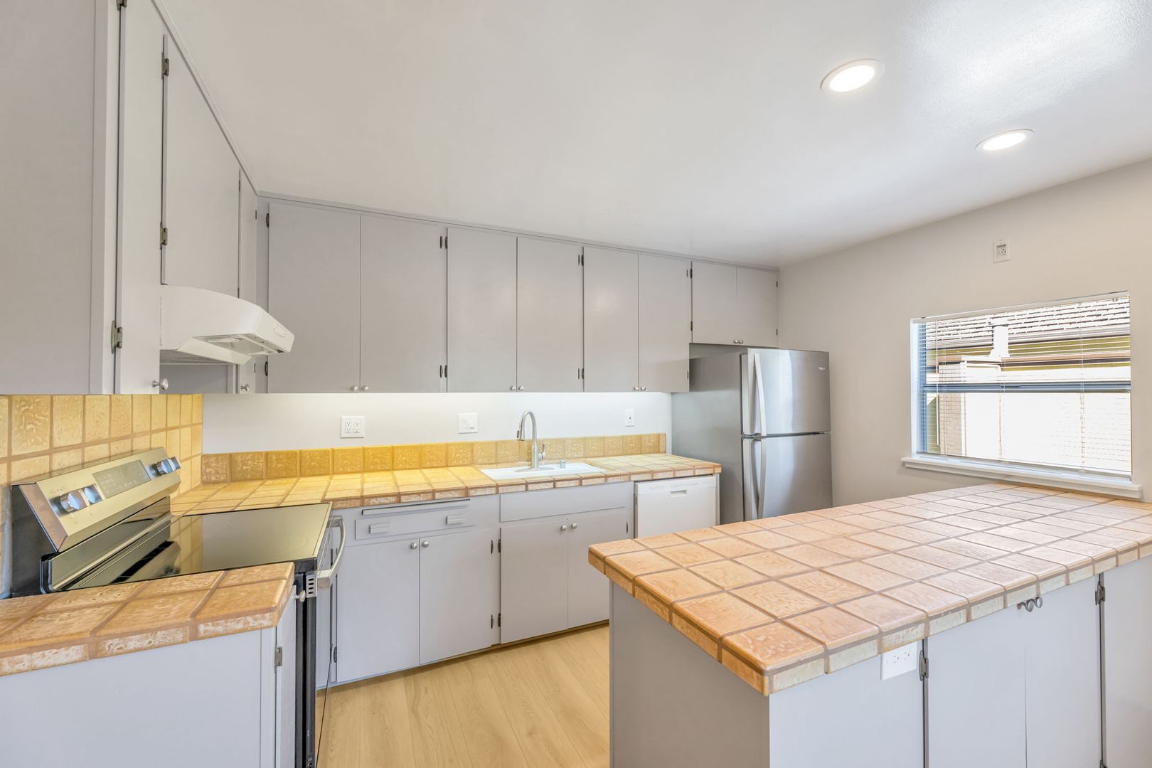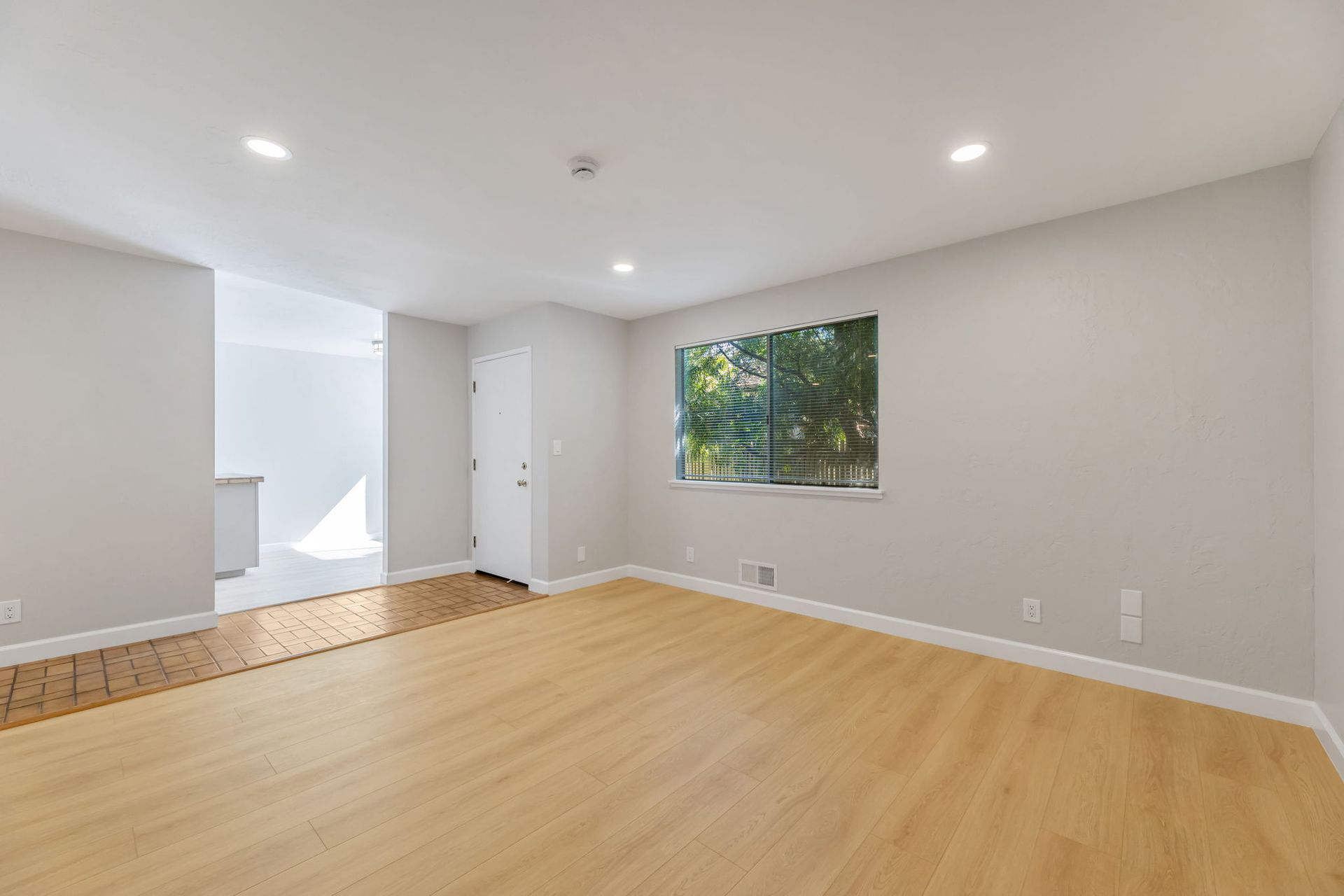 Fabulous upgraded 2 bedroom, 1 bath apartment located one block to downtown (est 925sf). This apartment boasts new flooring, paint, recessed LED lighting, and refinished bathroom. Enjoy an expansive private balcony located off of the sun-lit kitchen with a long peninsula countertop. No shared walls on this 2nd story apartment.
